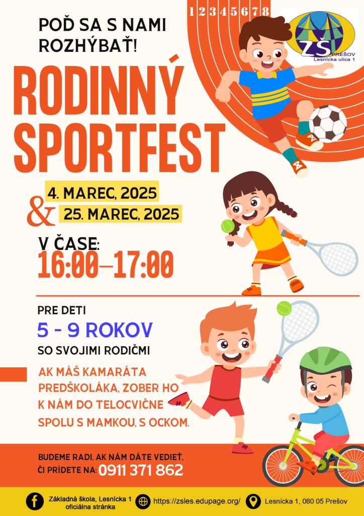 Pozvánka na rodinný Sportfest - ZŠ Lesnícka